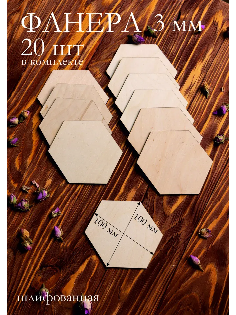 Набор заготовок из фанеры - это идеальный материал для воплощения ваших творческих идей. В этот набор входит 20 ромбовидных отшлифованных заготовок из березовой фанеры толщиной 3 мм размером 100 мм (10 см), что делает ее удобной для работы и обработки. Натуральный, светлый цвет древесины создает прекрасную основу для рисования красками, выжигания, декупажа и тд.