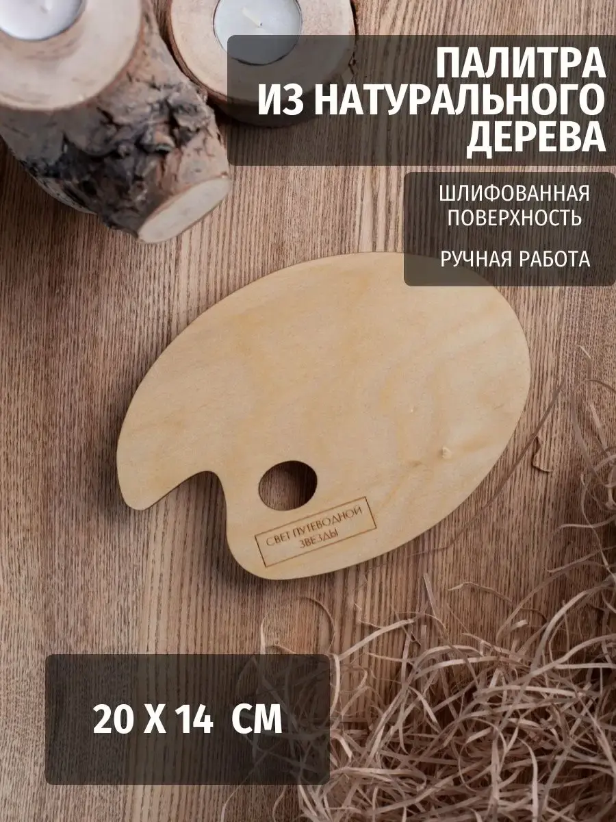 Лёгкая и прочная деревянная художественная палитра для смешивания красок, гуаши, акварели, масляных красок с гладкой поверхностью имеет размер 20*14 см и толщина 3 мм. Она идеально подходит для смешивания масляных, акриловых и темперных красок, устойчива к разбавителям и растворителям. Основа палитры - березовая фанера, покрытая декоративным маслом с воском. Благодаря шлифованному отверстию для большого пальца, удобным изгибам и закруглённым углам палитру удобно держать в руках даже длительное время. Размер позволяет брать палитру с собой в путешествия и на зарисовки на открытом воздухе, на природе. Незаменима для художников. Природный материал приятнее чем пластик. Новый Год 2023