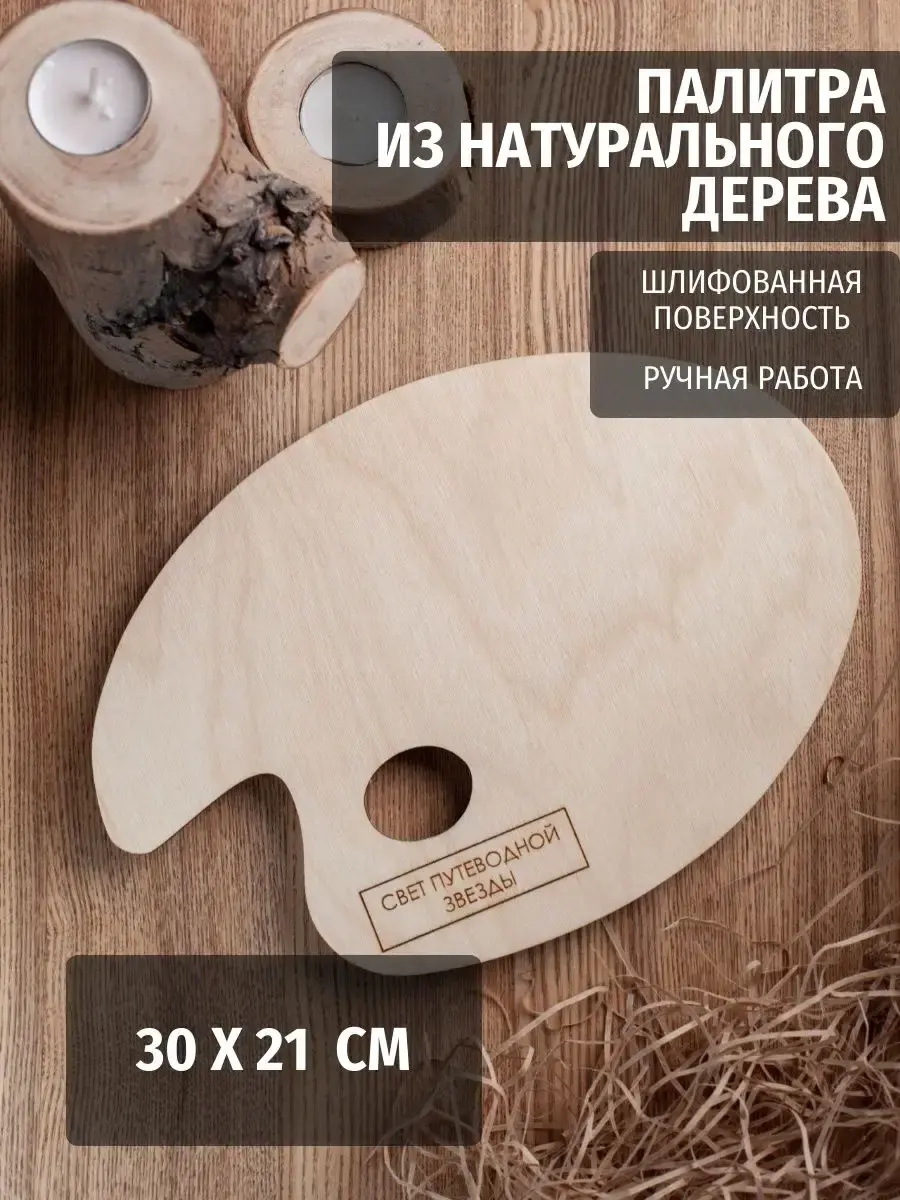 Лёгкая и прочная деревянная художественная палитра для смешивания красок, гуаши, акварели, масляных красок с гладкой поверхностью имеет размер 30*21 см и толщина 3 мм. Она идеально подходит для смешивания масляных, акриловых и темперных красок, устойчива к разбавителям и растворителям. Основа палитры - березовая фанера. Благодаря шлифованному отверстию для большого пальца, удобным изгибам и закруглённым углам палитру удобно держать в руках даже длительное время. Размер позволяет брать палитру с собой в путешествия и на зарисовки на открытом воздухе, на природе. Незаменима для художников. Природный материал приятнее чем пластик.
